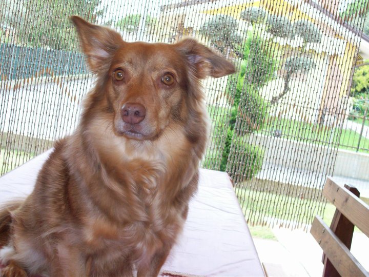 HA UNA BELLA CODA LUNGA E PELOSA ED IO LE METTO SEMPRE UN FIOCCHETTO ROSSO.
