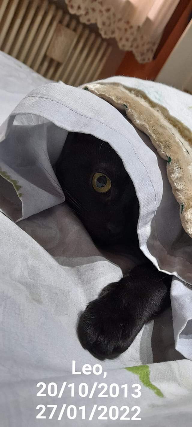 Hai benedetto la mia esistenza per nove anni, nove anni di meraviglia, di amore, di risate e di lacrime. Ti ho portata a casa che sembravi un topino, tanto eri piccola, e infatti è anche così che mi piace chiamarti. Ti ho voluta con tutta l'anima. Sarà un caso che eravamo solo io e te, all'inizio, mentre la Vivi era in vacanza, ed è stato lo stesso alla fine? Ma ieri, col cuore, c'era anche lei, e tu lo sai. Ti abbiamo amata moltissimo, mia piccola saggia, così tanto che voglio credere che la paura che sentivi ieri in confronto non era nulla. Spero di essere riuscita a portare via almeno un po' di quel dolore, mentre ci guardavamo e piano piano scivolavi via. Non avrei mai voluto farti una cosa del genere, amore mio, ma so che sei stata tu a darmi il permesso di farlo.